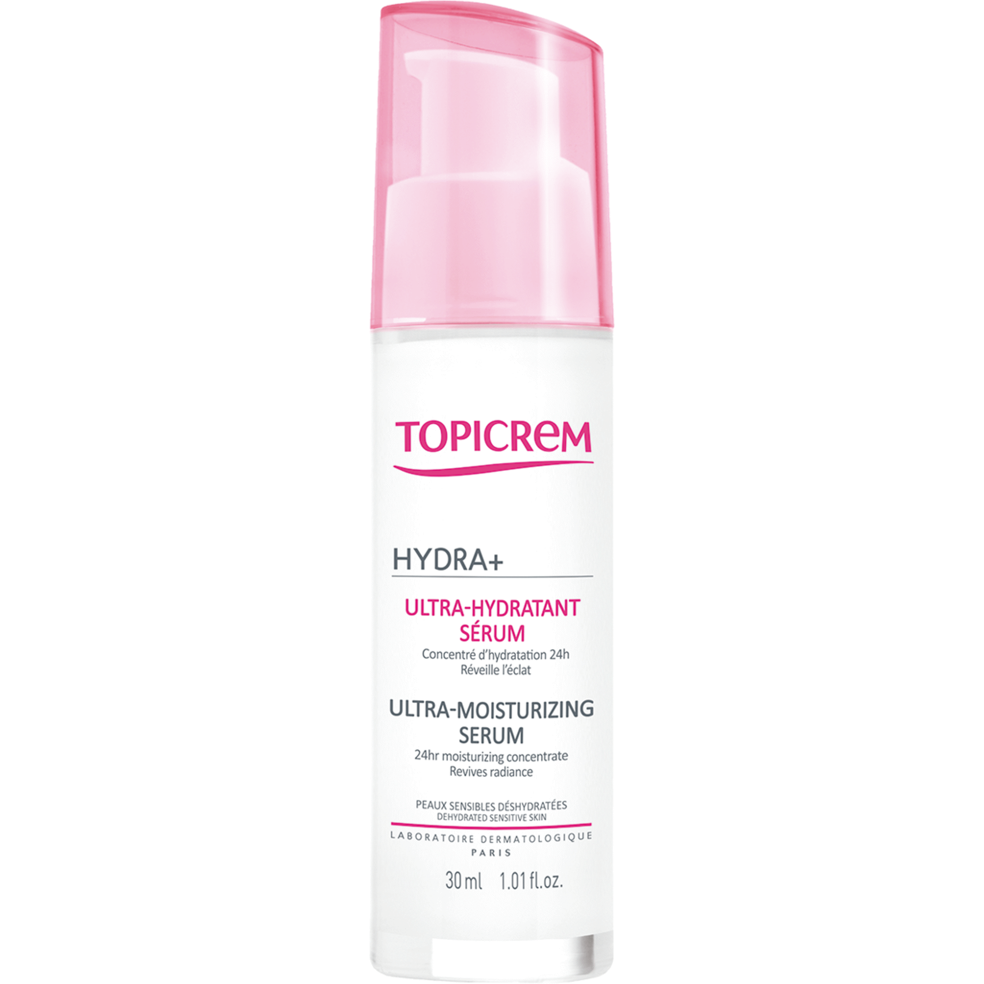 Topicrem HYDRA+ Sérum Ultra-Hidratante é um sérum concentrado de hidratação, revelador de luminosidade, indicado para peles desidratadas e baças. Hidrata profundamente e revela a luminosidade das peles sensíveis. Booster de hidratação. Hidratação prolongada 24h. Ação anti-poluição. Textura evanescente ultra fluida. Sensação de frescura. Penetração instantânea. Perfume delicado.