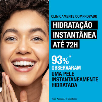 Este gel-creme sem fragrância, enriquecido com Fator de Hidratação Natural (FHN) da pele – mais 20% de Ácido Hialurónico**, Aminoácidos, Eletrólitos e Ceramidas, está clinicamente comprovado que proporciona de imediato 6 vezes mais hidratação* e que hidrata a pele seca durante 72 horas.