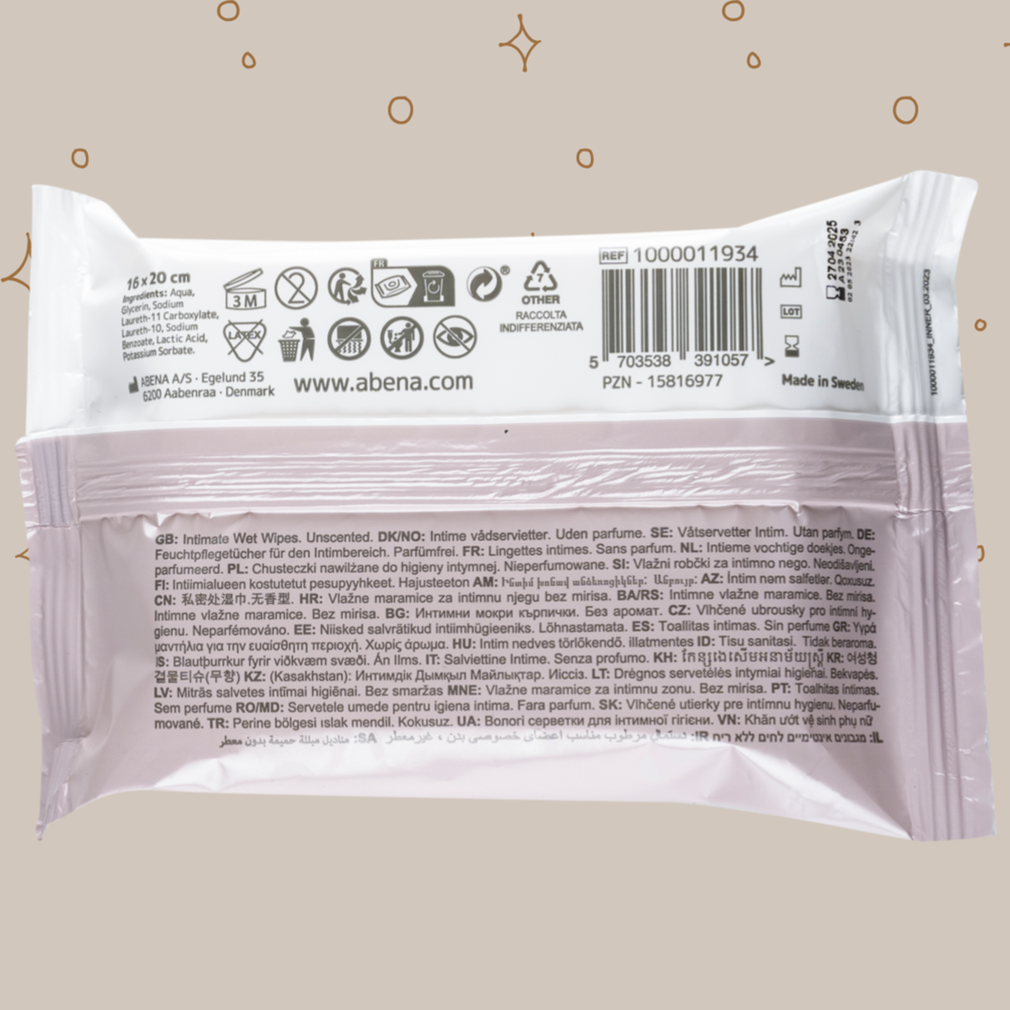 Limpar a zona íntima com a toalhita. Não precisa de enxaguamento.