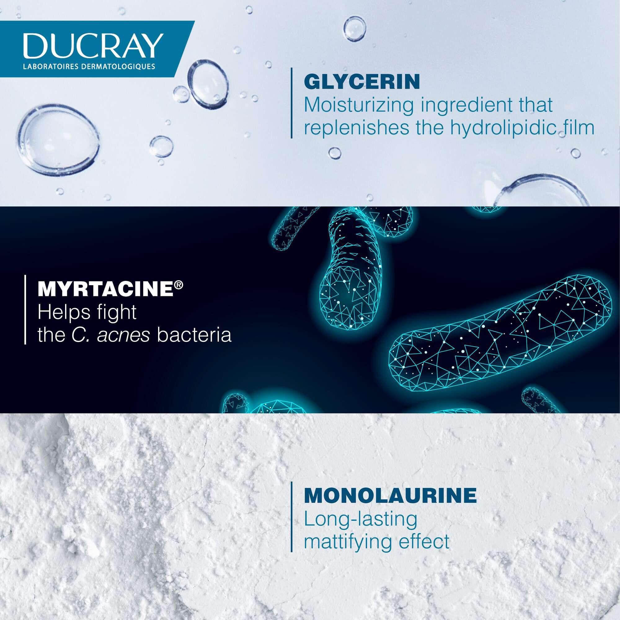 Contém Myrtacine®, um ativo patenteado que atua sobre a bactéria responsável pelo acne, contribuindo para uma pele mais limpa e saudável.