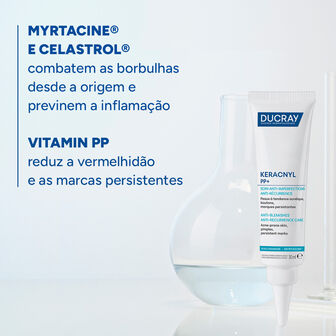 O Creme Rosto Anti-imperfeições Keracnyl PP+ ajuda a reduzir as borbulhas inflamadas.