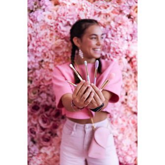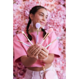 O kit perfeito para fazer maquilhagens super divertidas! Já não vais precisar de ir buscar os pincéis da tua mãe, vais agora ter os teus! Cinco pincéis que vêm dentro de uma bolsa multiusos. Já pensaste que também podes transportar nela o teu telemóvel? Ou o teu passe! A bolsa de maquilhagem com os pincéis essenciais para a tua makeup do dia a dia.