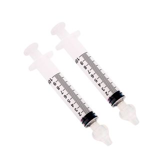 O Kit Seringas de Lavagem Nasal é composto por duas seringas de 10 ml e dois adaptadores de silicone macios.