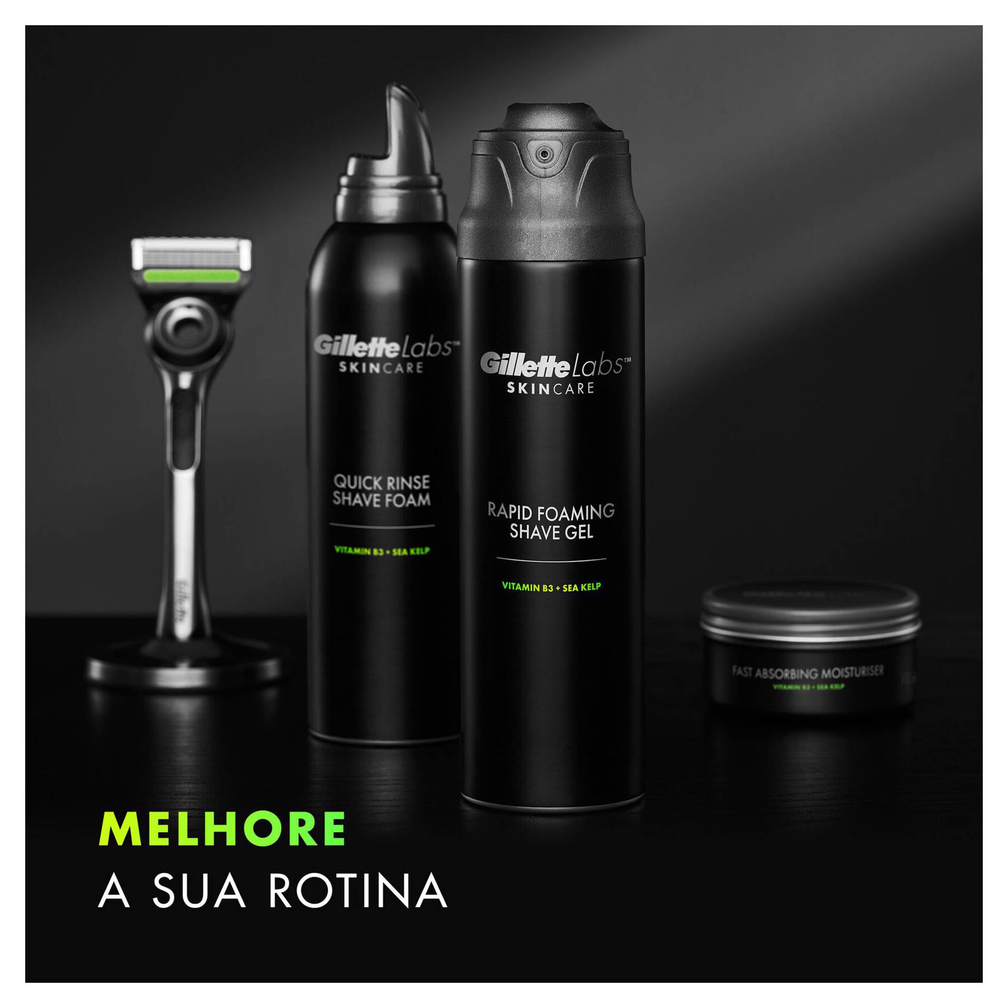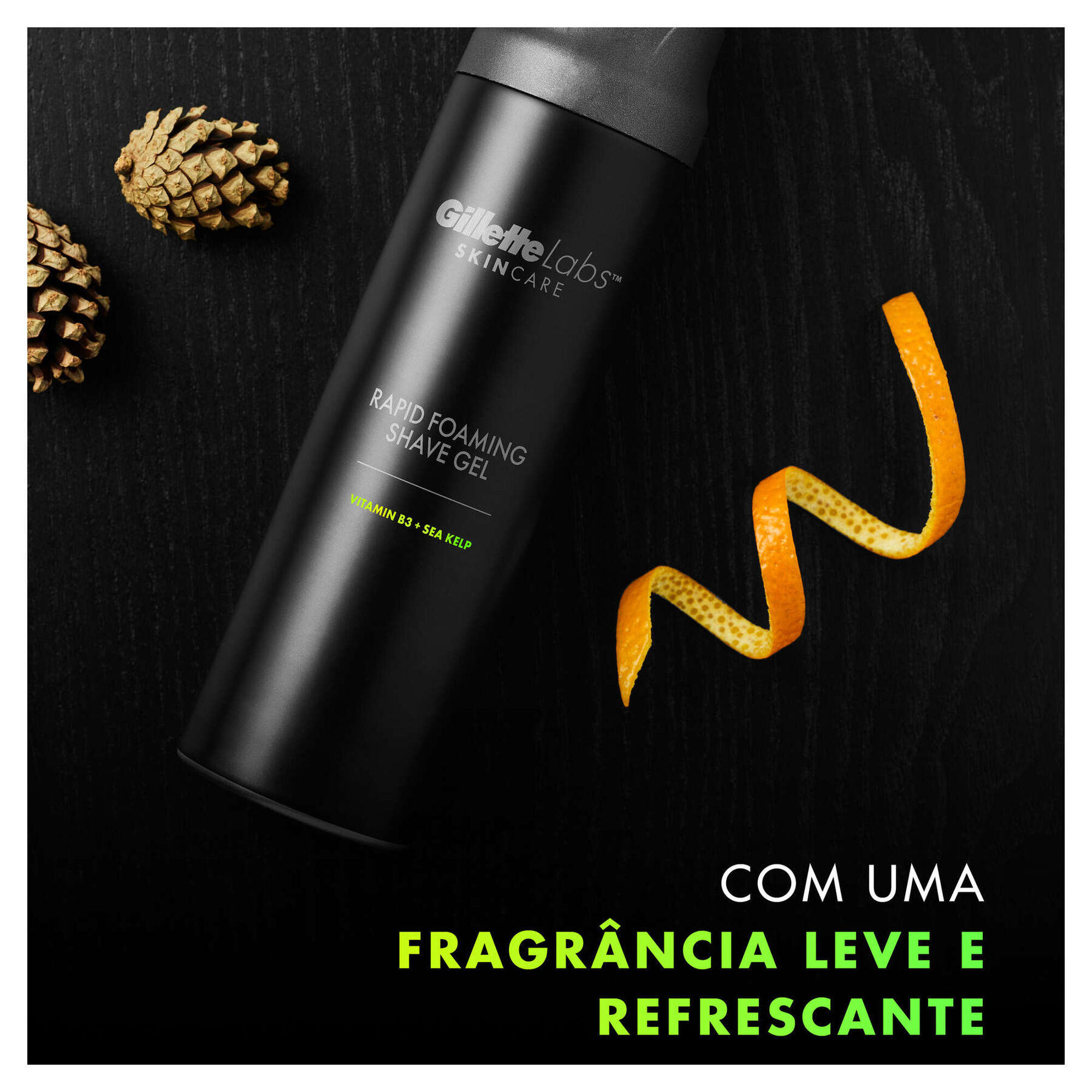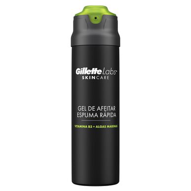 O gel de barbear espuma rápida Gillette Labs refresca para acalmar a pele e ajuda a protegê-la durante o barbear.