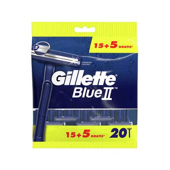 As Lâminas de Barbear Descartáveis Blue II da Gillette para homem tem 2 lâminas de longa duração com revestimento de crómio, para que não tenha de mudar a sua máquina de barbear tão frequentemente.
