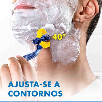 As máquinas de barbear descartáveis com Lubrastrip são concebidas com uma cabeça flexível que se ajusta aos contornos do seu rosto, facilitando o barbear das zonas de difícil acesso.
