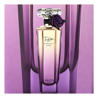 O perfume feminino Trésor Midnight Rose evoca um cativante e sedutor jogo de esconde-esconde durante o pôr do sol, segundo as regras do amor.