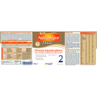 Xarope de glucose, óleos vegetais (oleína de palma, soja, coco e alto oleico de girassol ácido), amido de milho modificado, caseína extensivamente hidrolisado, frutose, citrato de cálcio, fosfato de cálcio, cloreto de potássio, óleos de organismos unicelulares (AA Mortierella alpina e DHA Cripthecodinium cohnii), L-cistina, cloreto de colina, L-ascorbato de sódio, L-tirosina, inositol, L-triptofano, óxido de magnésio, sulfato ferroso, cultura de bactérias Lactobacillus rhamnosus GG (0,034%), a taurina , ácido ascórbico, sulfato de zinco, L-carnitina, nicotinamida, acetato de DL-alfa-tocoferol, pantotenato de cálcio, sulfato de cobre, riboflavina, cloridrato de piridoxina, palmitato de vitamina A, cloridrato de tiamina, sulfato de manganês, colecalciferol, iodeto de sódio, cloreto crómico, ácido fólico, molibdato de sódio, fitonadiona, selenito de sódio, D-biotina, e cianocobalamina.