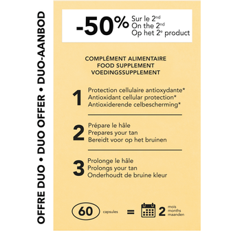 Sunissime é um suplemento alimentar que contribui para um bronzeado bonito e rápido e uma pele mais resistente ao sol. Estas cápsulas podem também ser usadas ao longo do ano para um tom natural e saudável.