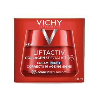 Liftactiv Collagen Specialist Noite corrige os danos diários acumulados resultantes das agressões diárias às quais a nossa pele está sujeita. Formulado com Péptidos refirmantes e Vitamina Cg + Resveratrol de origem natural, reforça a proteção da pele contra as agressões externas, durante a noite. Recomendado para mulheres que procuram performance antienvelhecimento e um aspeto saudável.