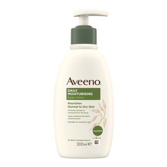 Loção Corporal Nutritiva Pele Normal e Seca Aveeno, combina Aveia Coloidal concentrada com agentes emolientes ricos.