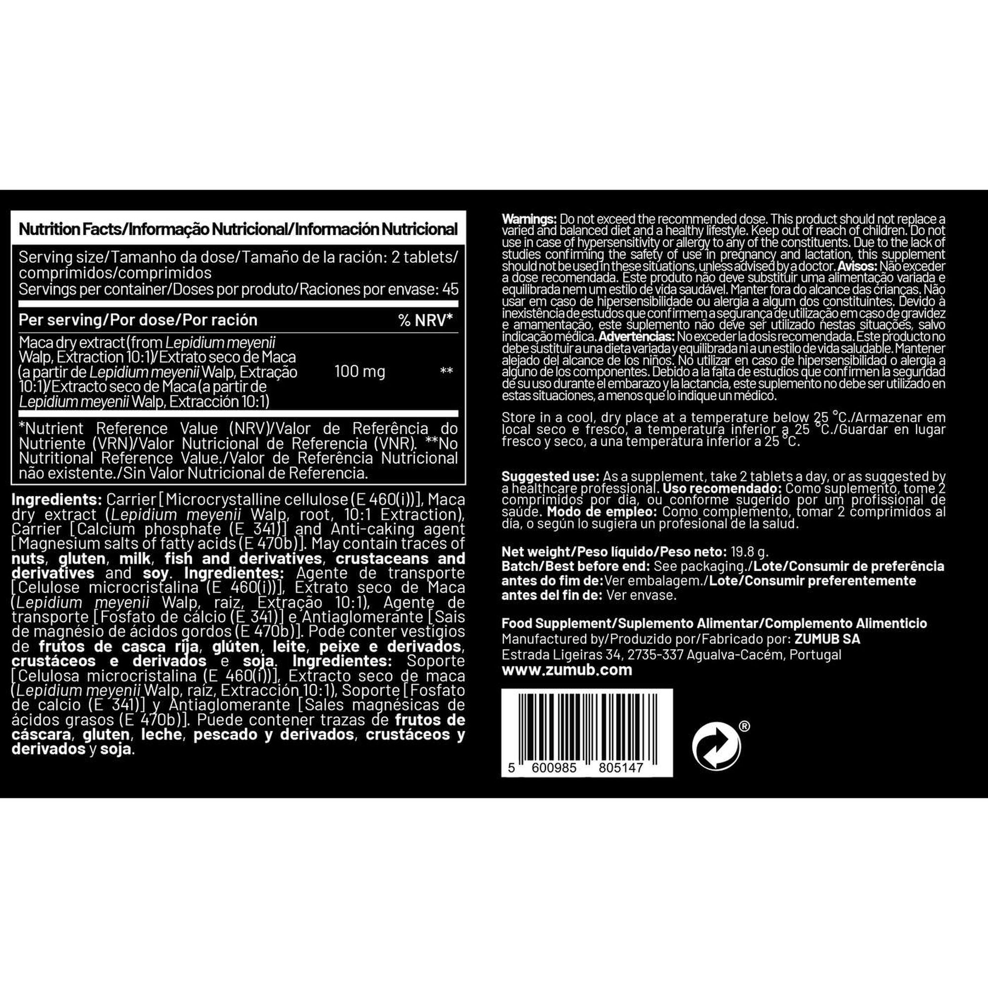 Zumub Maca em comprimidos apresenta extracto de raiz de maca – um super ingrediente que está a conquistar um lugar de confiança entre os optimizadores naturais mais eficientes.