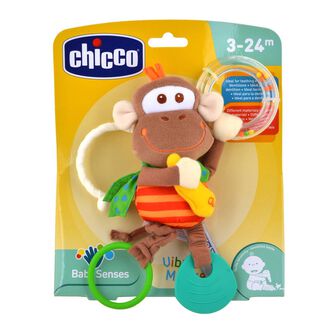 Chicco Macaquinha Brincalhona é uma simpática macaquinha rica em várias atividades: a pata vibra quando se puxa a argola, as bolinhas coloridas movem-se no interior do anel transparente, a banana faz ruidinhos e o pezinho em plástico macio é ideal para o período da dentição. Graças à prática argola, é fácil fixá-la, nos carrinhos de passeio.