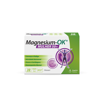 Magnesium OK 50+ Mulher é um suplemento alimentar com necessidades especificas da mulher 50+ com Complexo Duo Magnesio e Vitamina B6.