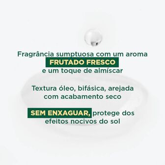 Graças ao seu filtro UV, este óleo seco protege o cabelo exposto às agressões exteriores (sol, mar, piscina) e alisa a fibra para preservá-lo da secura.