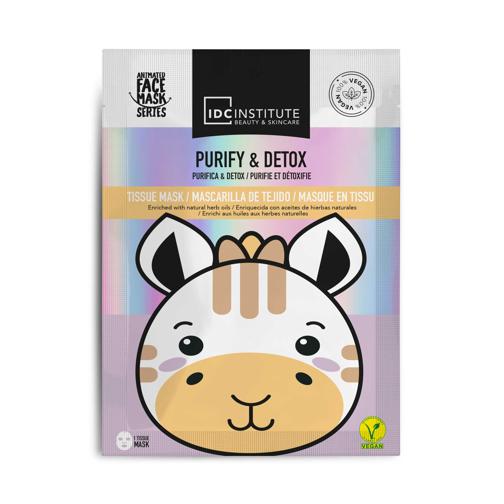 Esta máscara vegan de rosto com imagem de girafa foi desenvolvida com um tecido ultra fino que adere confortavelmente ao rosto como uma segunda pele.