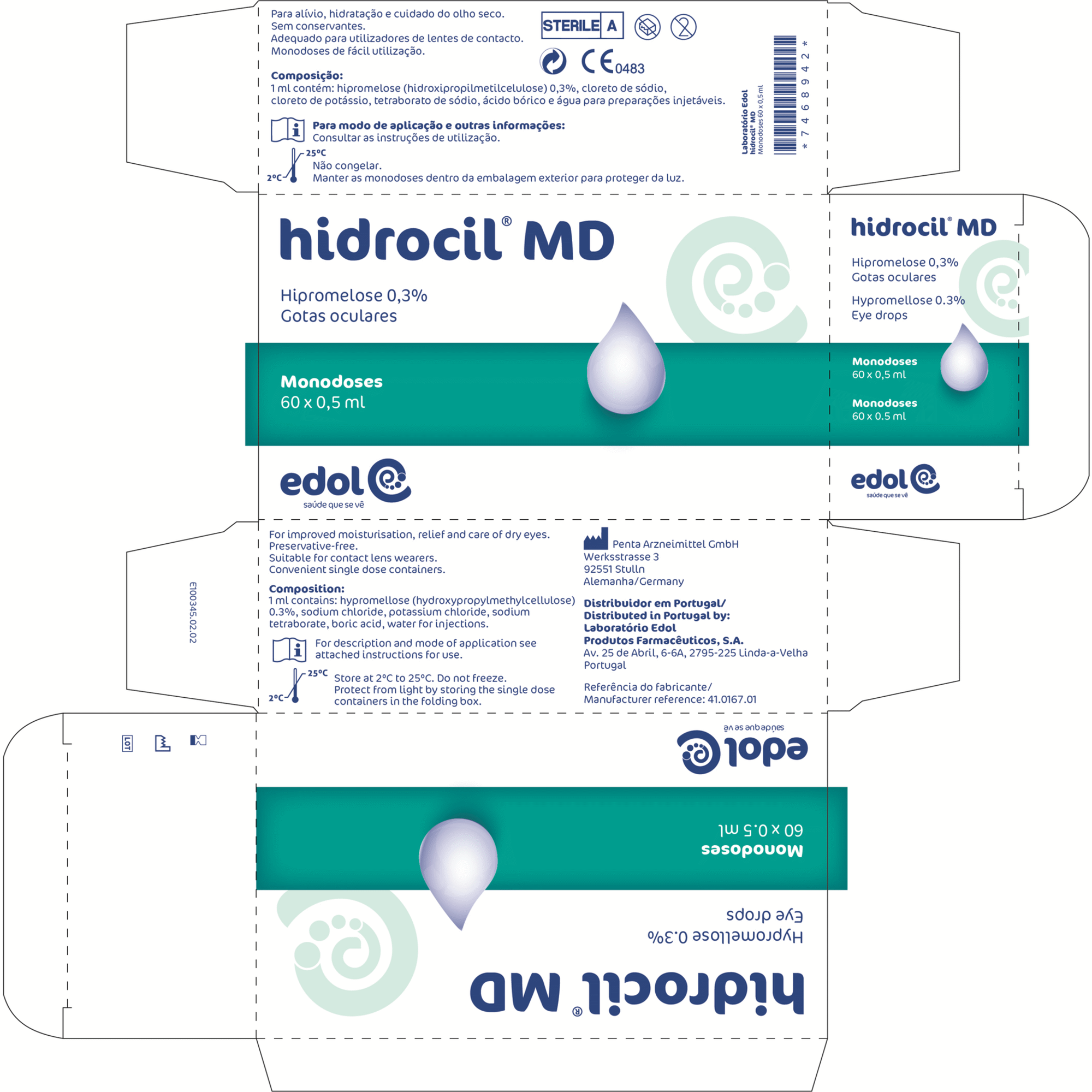 Hidrocil MD, um produto estéril, sem conservantes, límpido e viscoelástico, forma um filme protetor da córnea.