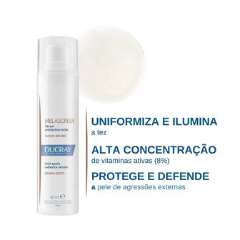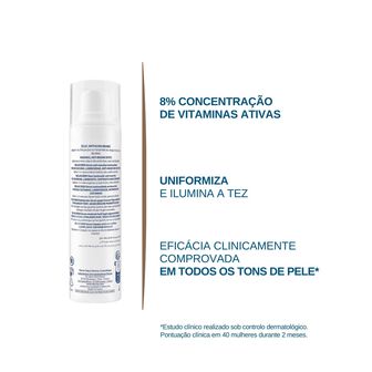 Concentrada com 8% de vitaminas ativas, a sua fórmula penetra rapidamente na pele para iluminar e clarear a tez, protegendo simultaneamente a pele dos efeitos nocivos do stress oxidativo induzido por agressões externas .