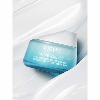 Minéral 89 Gel Sorbet Matte, um gel não comedogénico com uma textura semelhante a um sorbet que se funde na pele e proporciona 48 horas de hidratação, para uma sensação de frescura e leveza na pele.