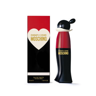 O recipiente Cheap And Chic Edt é um frasco de estilo vintage que representa Olivia, a namorada de Popeye. Opaca, nas cores preto e vermelho com o logotipo da marca, a tampa é preta e oculta o distribuidor.