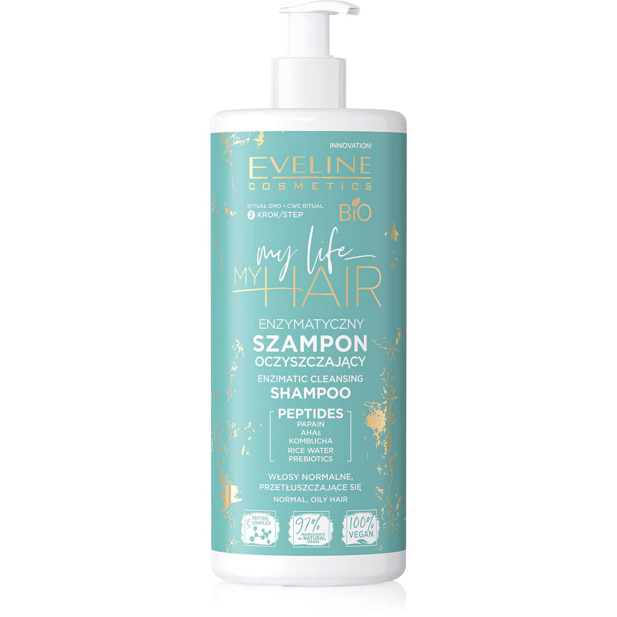 A gama Eveline My life MY HAIR para o cuidado do cabelo e do couro cabeludo combina a ação dos peptídeos com o poder dos ingredientes ativos de origem natural e a riqueza dos óleos vegetais nutritivos.