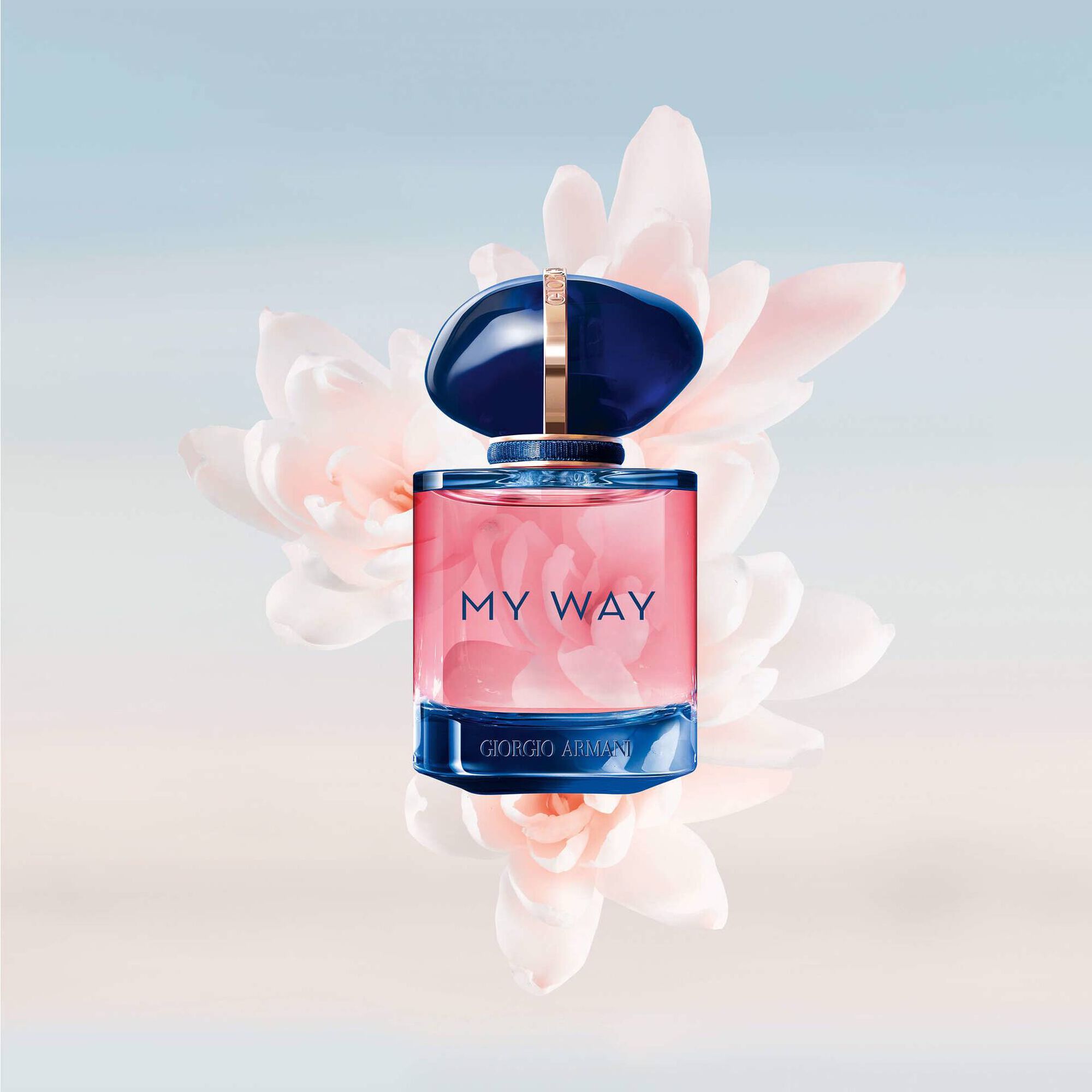My Way Eau de Parfum Intense, o segundo capítulo na história de My Way. Um talismã azul que torna cada encontro mais intenso e amplifica cada experiência.
