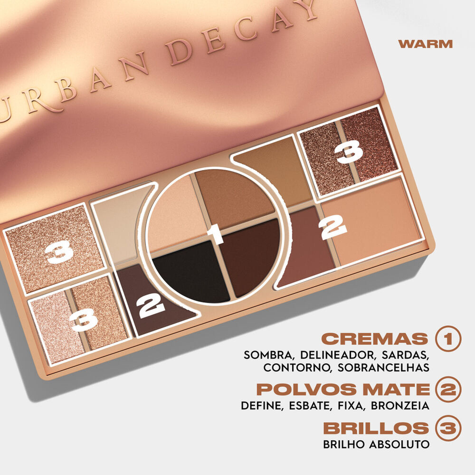 Resultados: Em cada aplicação, a paleta Naked Shaped Warm permite criar um look impecável e multidimensional que se mantém intacto durante até 24 horas; desde sombras e contornos até sobrancelhas, delineados e iluminadores, esta paleta garante resultados versáteis, duradouros e adequados a qualquer ocasião.