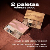 Aplicar os cremes como base ou para esculpir, esbater os tons mate para criar profundidade e adicionar brilhos para conferir intensidade. Usa também para delinear, contornar, iluminar, preencher sobrancelhas ou criar um look completo e multidimensional.