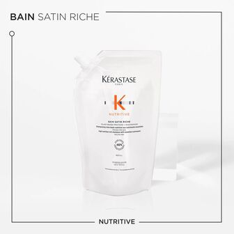 Nutritive Bain Satin Riche de Kérastase é um champô altamente nutritivo para cabelo muito seco. Contém polímeros antissecura que proporcionam uma nutrição e força intensas, tornando-o um dos melhores champôs para cabelo muito seco. Adicionalmente, contém nutrientes essenciais para nutrir e reforçar o cabelo seco, para um resultado leve.