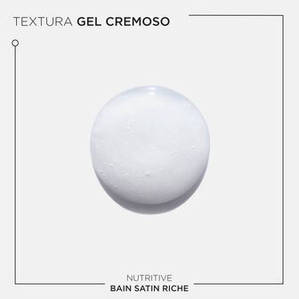 Bain Satin Riche tem uma textura de gel cremoso branco, espumoso e sem fricção, tornando-o um dos nossos melhores champôs para couro cabeludo com sensação do prurido e também para cabelos muito secos.