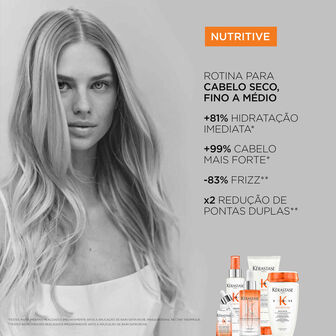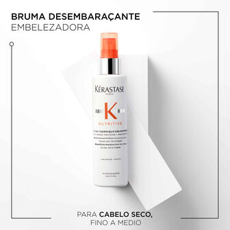 A Loção Capilar Termoprotetora Nutritive Thermique Sublimatrice da Kérastase revitaliza e repara o interior do cabelo, ao hidratar a fibra capilar, proporciona mais elasticidade e protege o cabelo até 230ºC.