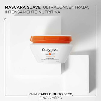A Máscara Capilar Masquintense da Kérastase nutre intensamente o cabelo muito seco, fino ou médio. Contém proteínas de origem vegetal e niacinamida que potenciam a capacidade de a fórmula nutrir e fortalecer o cabelo.