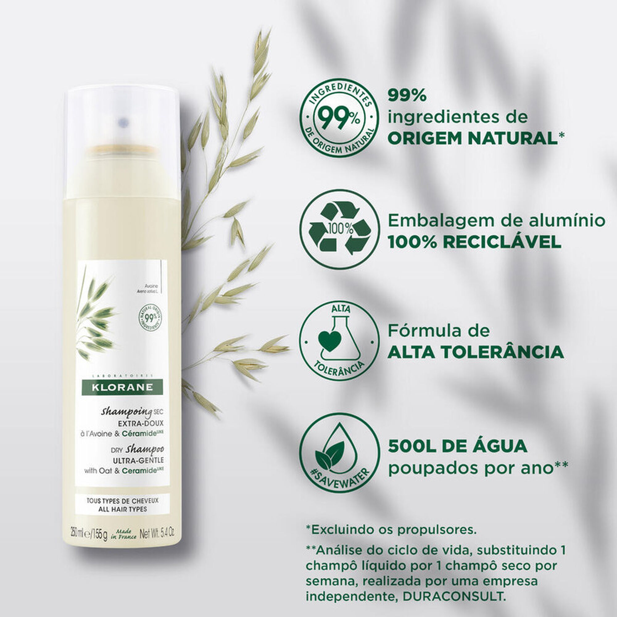 O Champô Seco Klorane com Aveia e Ceramidaᴸᴵᴷᴱ foi especificamente concebido para lavar o cabelo sem água.