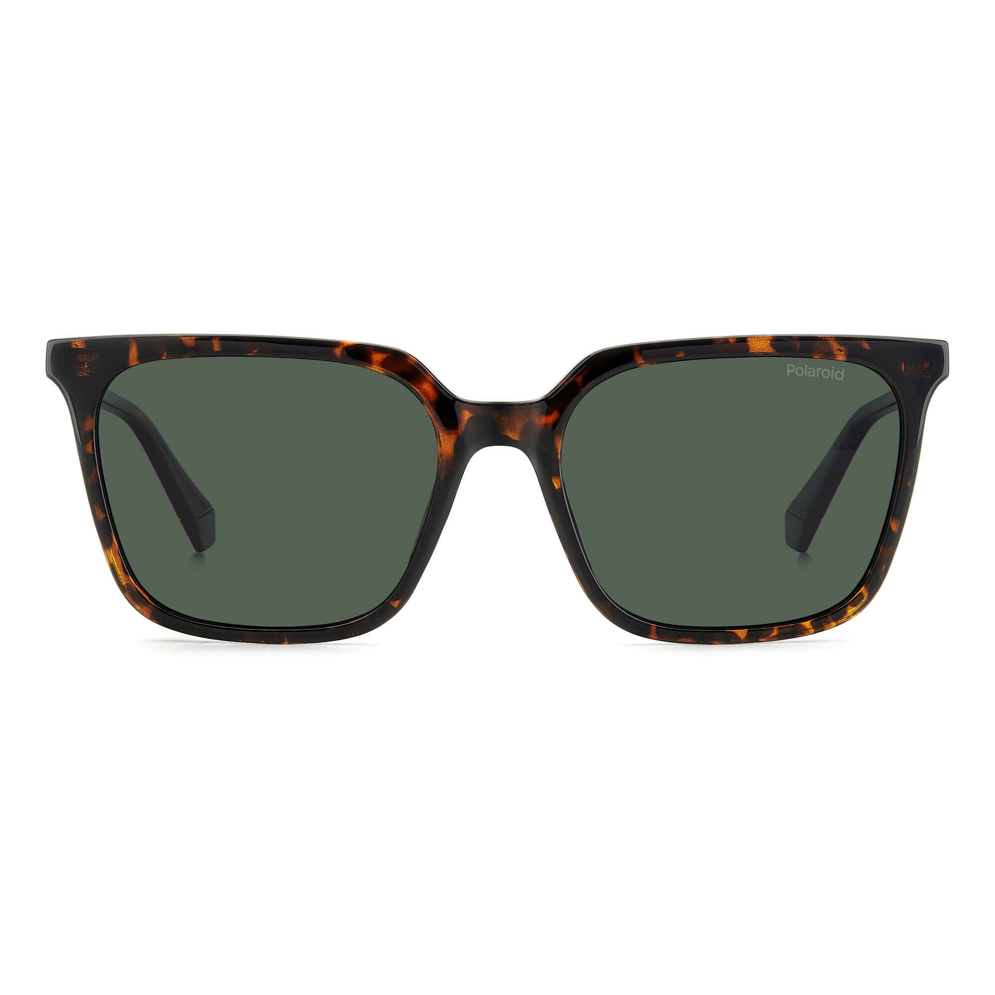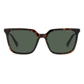 A Armação em tom havana é confortável e flexível. A cor da lente é verde polarizado.