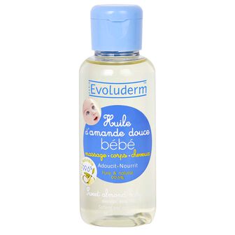 O óleo de amêndoa doce para bebé Huile d'Amande da Evoluderm é hipoalergênico e foi especialmente formulado para atender às necessidades da pele frágil dos bebês.
