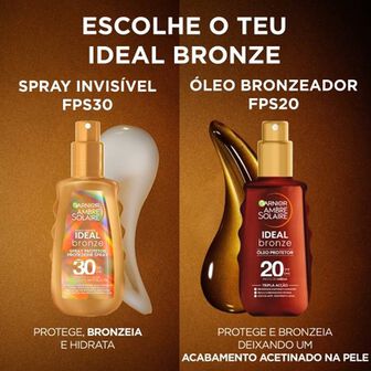 O Óleo Bronzeador da Garnier Ambre Solaire é o complemento perfeito para peles morenas que bronzeiam facilmente. Com manteiga de karité nutritiva, numa fórmula não pegajosa e resistente à água, para um bronzeado ideal. Bronzeado ideal, acabamento acetinado, não pegajoso, resistente à água, com manteiga de karité nutritiva.