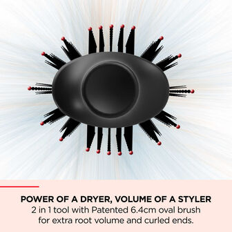Mais volume com a sua cabeça oval amovível 30% mais pequena, que permite a criação de penteados desde a raiz, e maior versatilidade durante a criação de penteados, tornando-a ideal para qualquer comprimento de cabelo.