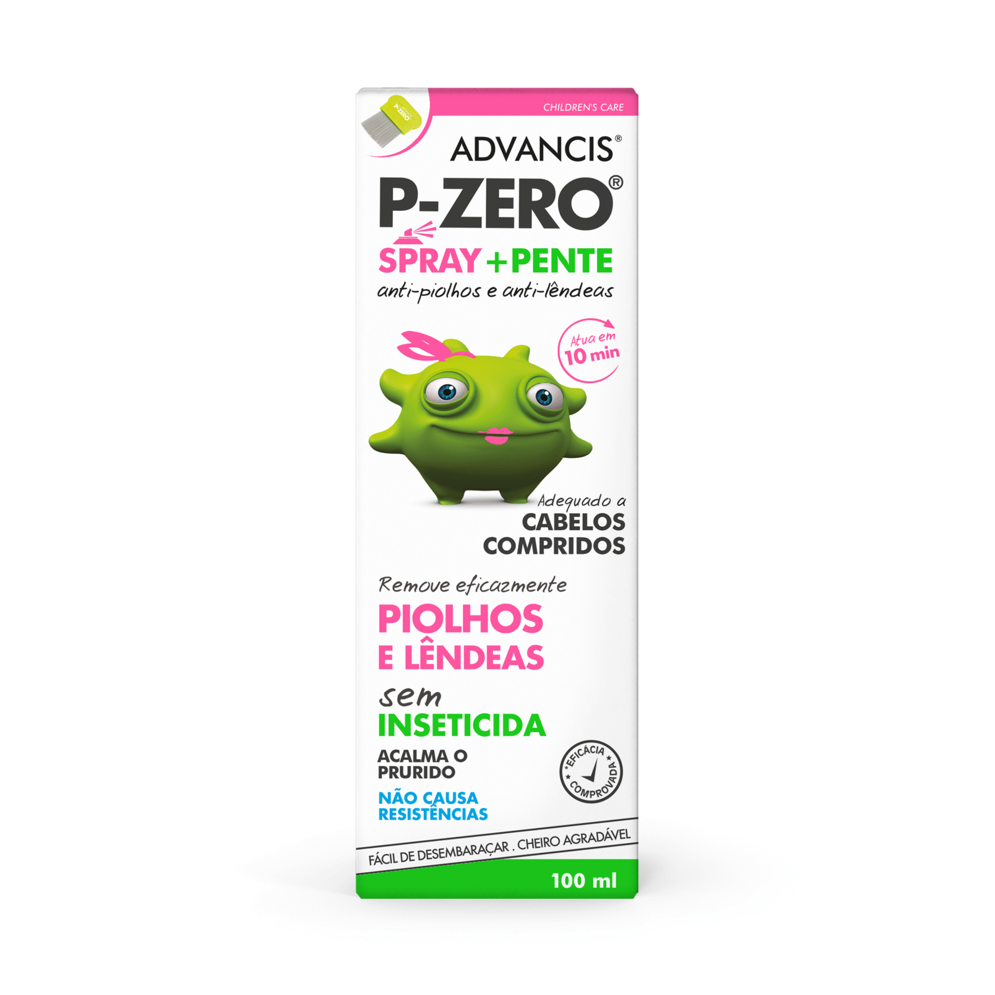 Advancis® P-zero® Loção + Pente corresponde a um conjunto de dois produtos - dispositivo médico e acessório - destinado à erradicação de piolhos e lêndeas em todo o cabelo e couro cabeludo. Inclui um pente de dentes finos e uma loção sem inseticidas, composta por ácidos gordos de cadeia média e óleo essencial de Ylang-Ylang.