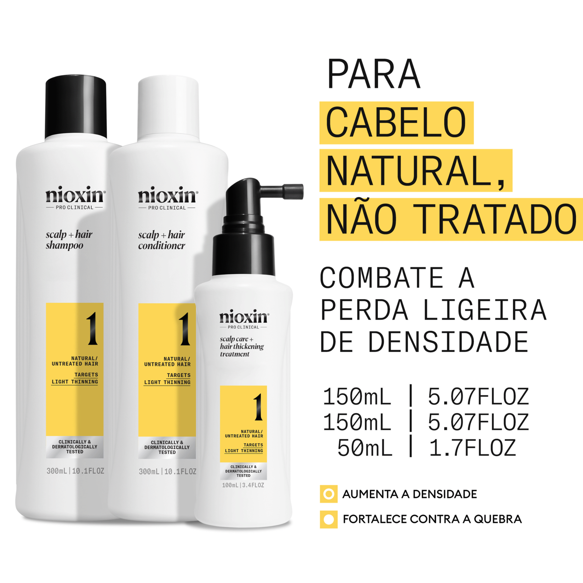 O Kit do Sistema 1 da Nioxin Professionals é um conjunto de 3 passos projetado para cabelo natural e não tratado com afinamento leve, testado clínica e dermatologicamente. Ajuda a engrossar e fortalecer o cabelo da raiz às pontas, evitando a quebra.