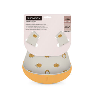Suavinex Soft Flex Babete Silicone Bege e Amarela +4M é um acessório feito de silicone de alta qualidade, indicado para bebés a partir dos 4 meses. Possui um bolso para recolher os restos de comida e proteger a roupa do bebé. Apresenta 6 posições diferentes para aumentar ou diminuir o comprimento. Pode ser lavada na maquina da louça. Contém 2 babetes.