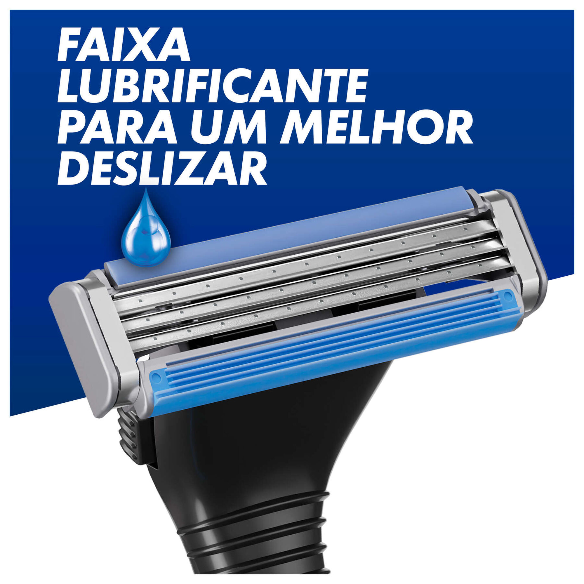 A máquina de barbear Gillette Sensor3 para homem inclui três lâminas com Lubrastrip para deslizar facilmente pela pele.