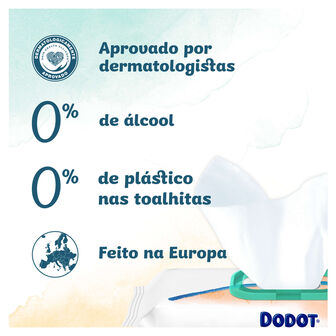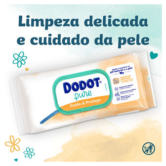 As toalhitas Dodot Pure Cuida e Protege são mais suaves do que o algodão e a água. Graças à sua fórmula única, ajudam a restabelecer o pH natural da pele, protegendo-a de irritações.