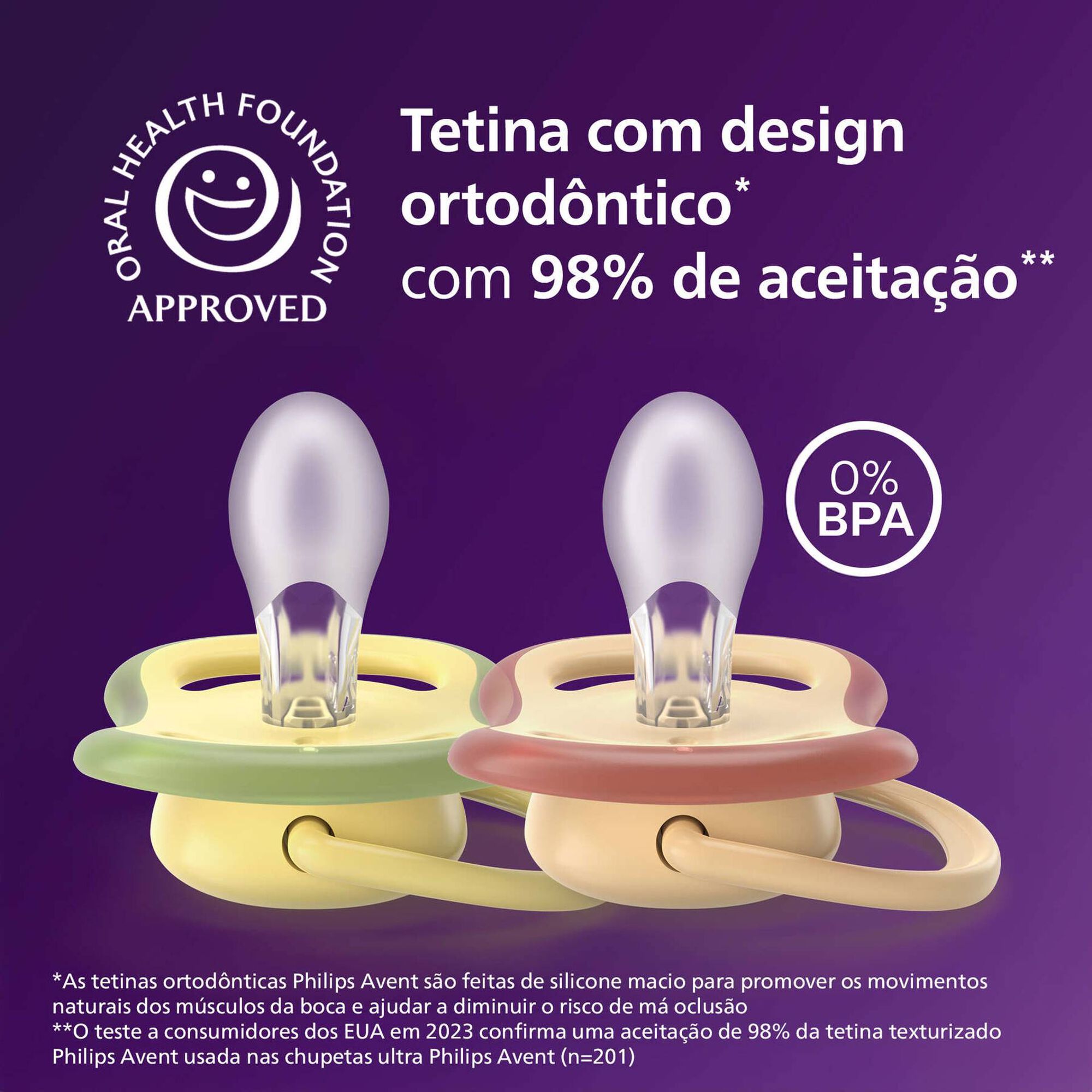 Calmante e respirável com orifícios amplos. 9 em cada 10 pais concordam: as chupetas Philips Avent Ultra Air são confortáveis para o meu bebé.