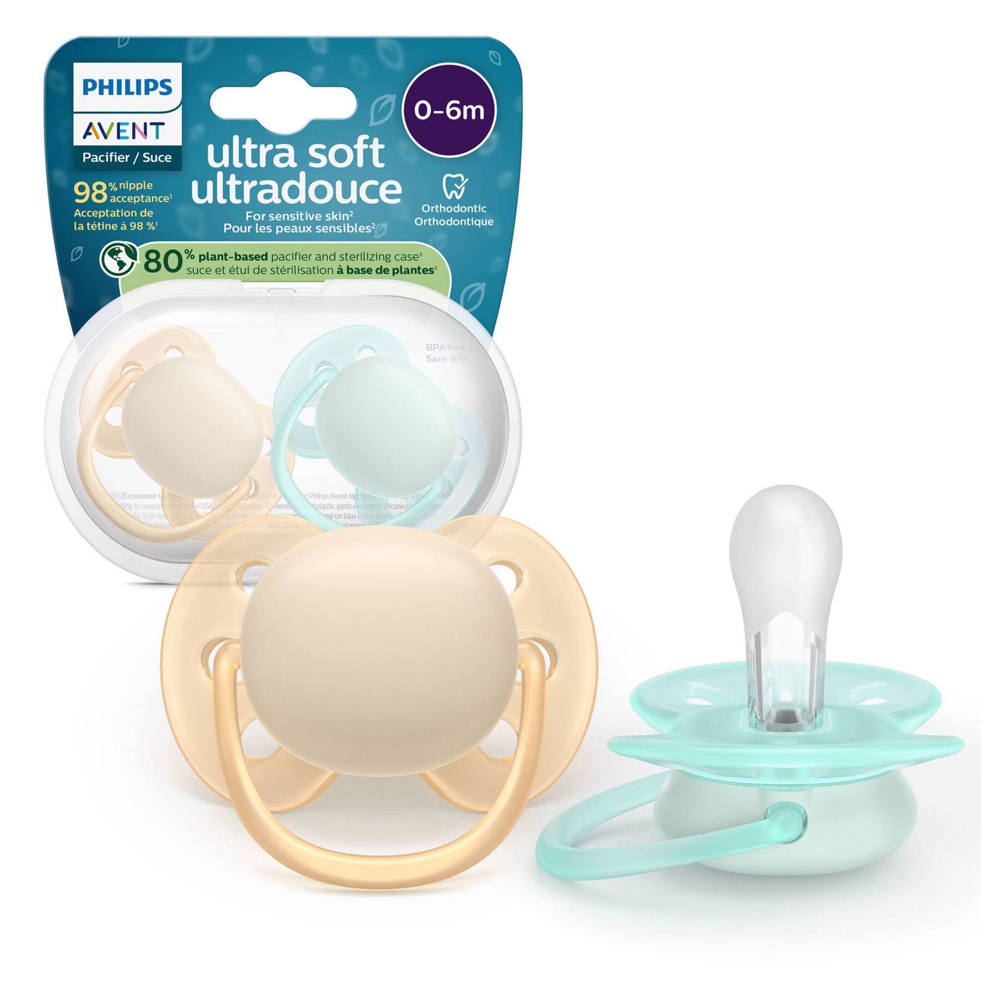 Cuidados premium para peles sensíveis com escudo flexível. 9 em cada 10 pais concordam: o meu bebé não tem irritação da pele depois de começar a utilizar a chupeta Ultra Soft.