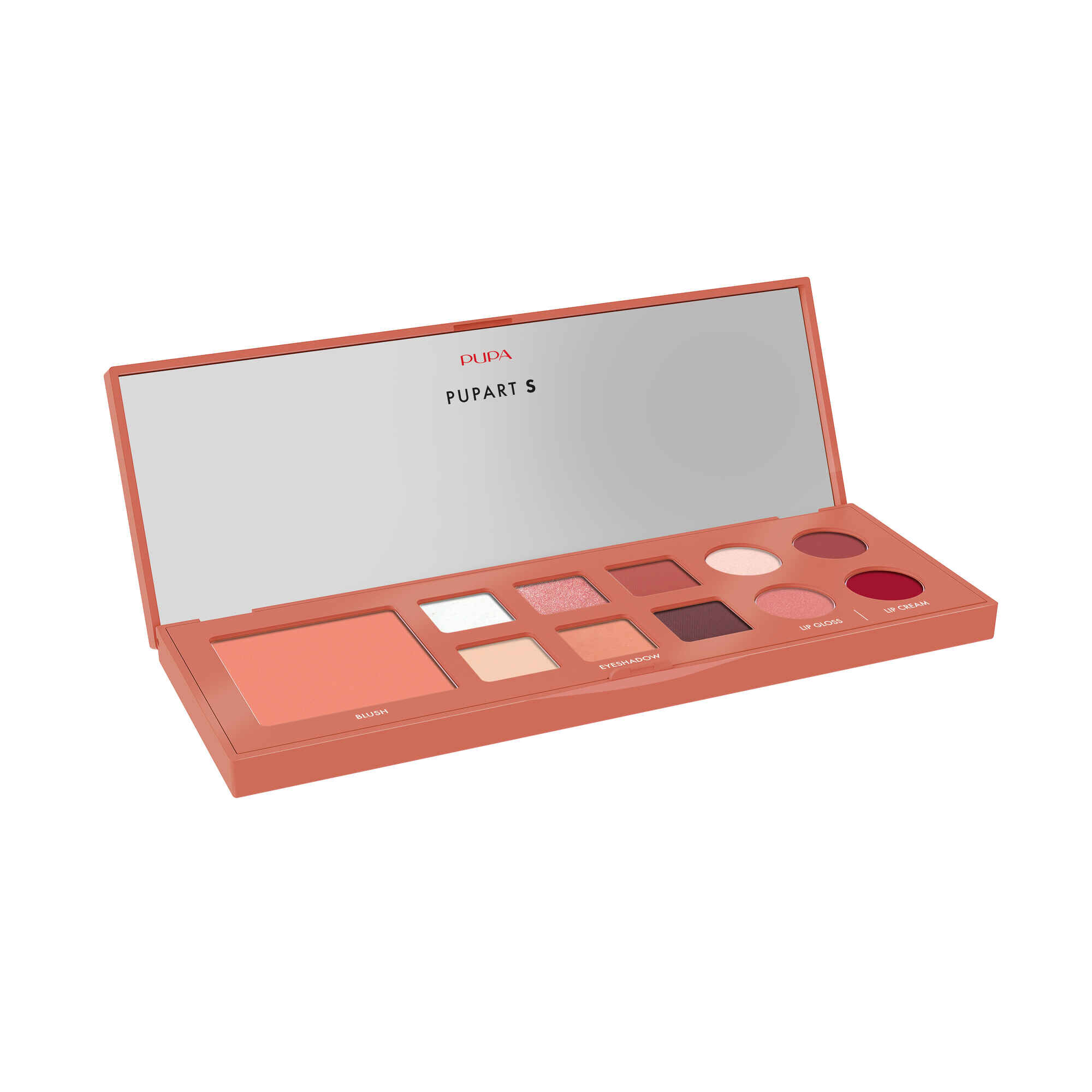 A paleta Pupart S é composta por 1 tom de blush, 6 tons de sombra em pó, e 4 tons de lábios.