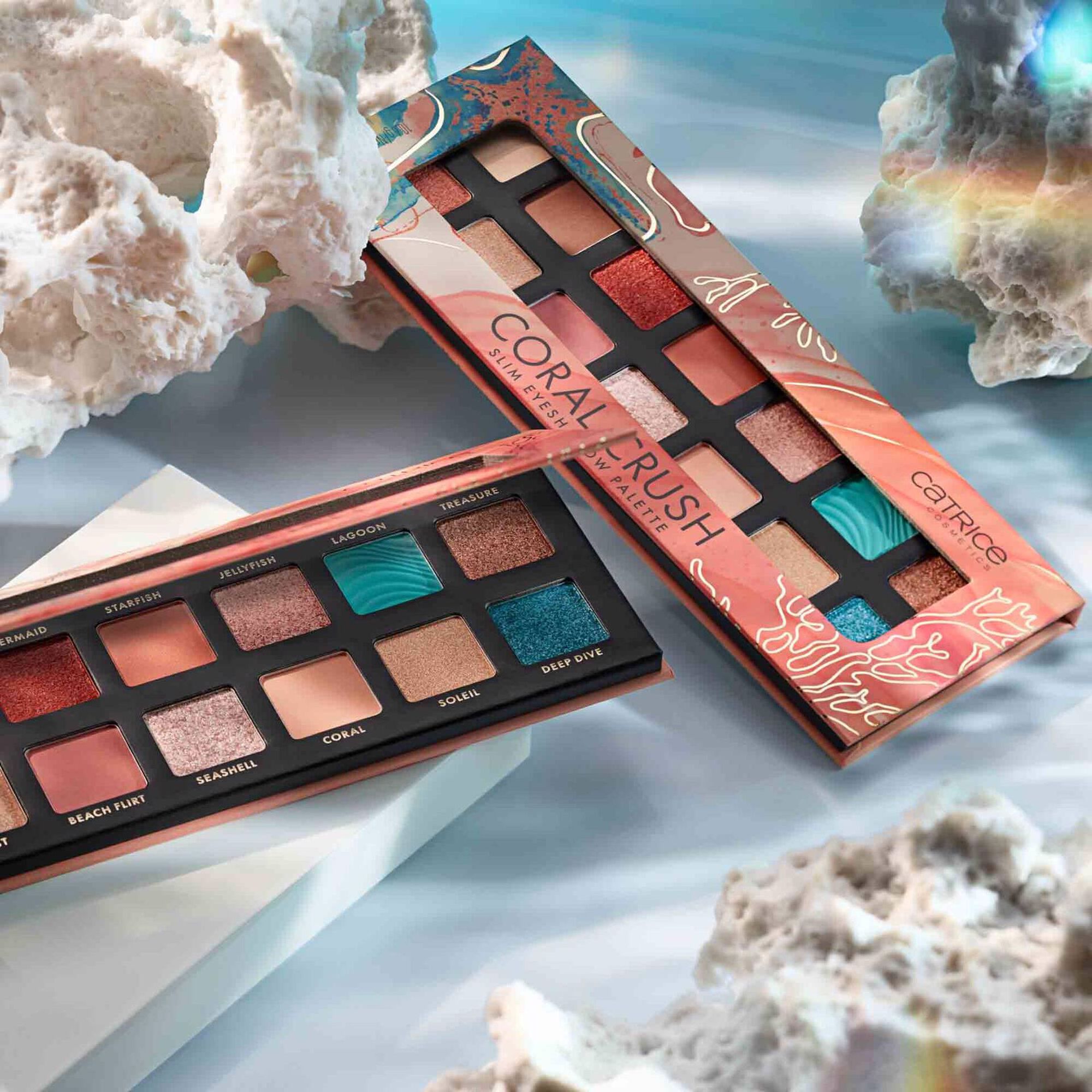 A Paleta de Sombra Olhos Coral Crush Slim tem cores de sombra para todas as ocasiões, mate, brilhante e metálico.