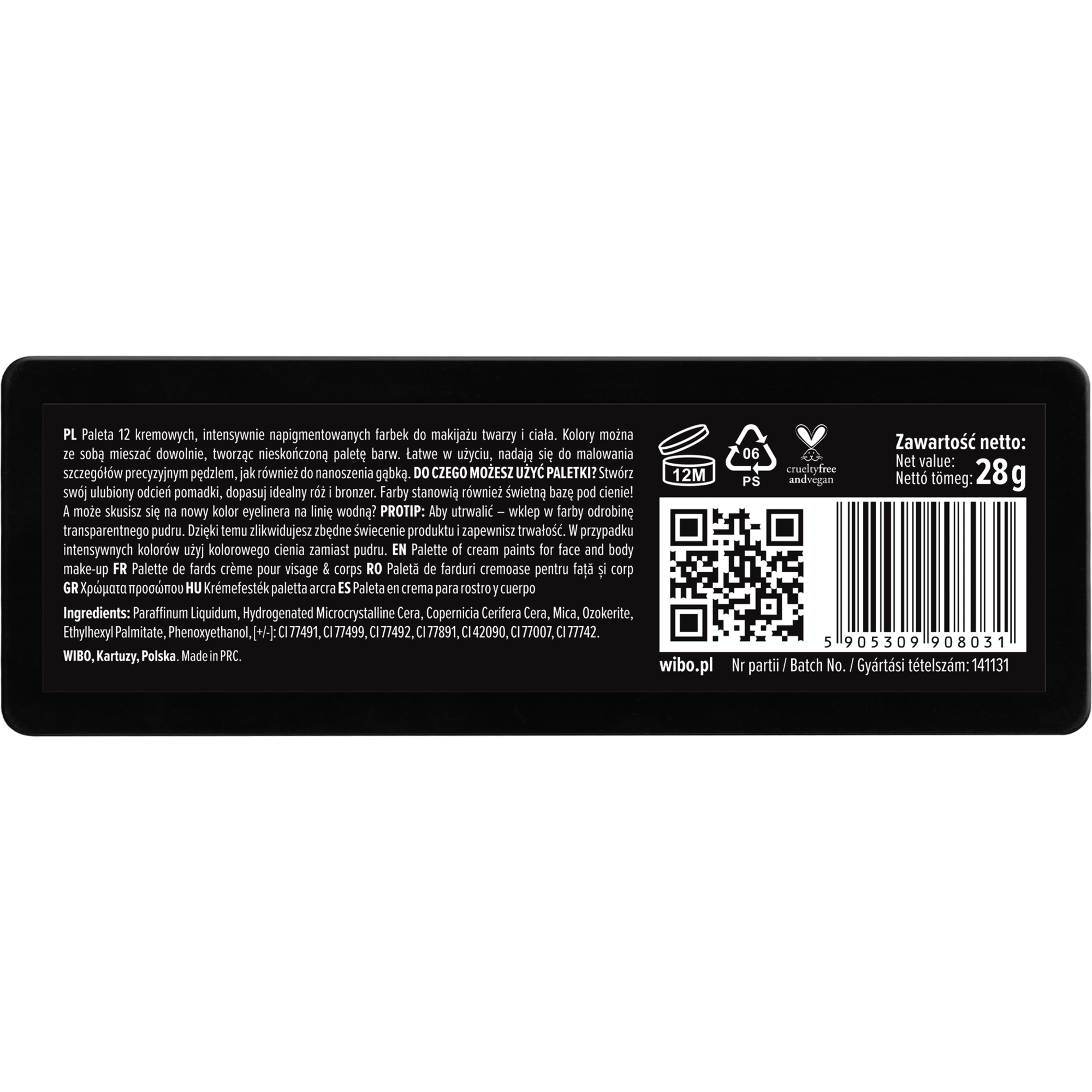 A Paleta em Creme Art has No Rules contém 12 tintas para o rosto e corpo em creme intensamente pigmentadas. As cores podem ser combinadas e misturadas livremente, criando uma paleta infinita de cores.