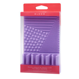 Paleta de limpeza de pincéis de maquilhagem, com várias texturas e com suporte para colocar os pincéis.