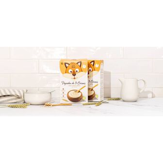 A Papinha de 3 Cereais +6M é composta por 3 cereais: trigo, aveia integral e arroz. Além disso, é enriquecida com várias vitaminas e minerais e não possui corantes nem conservantes.
