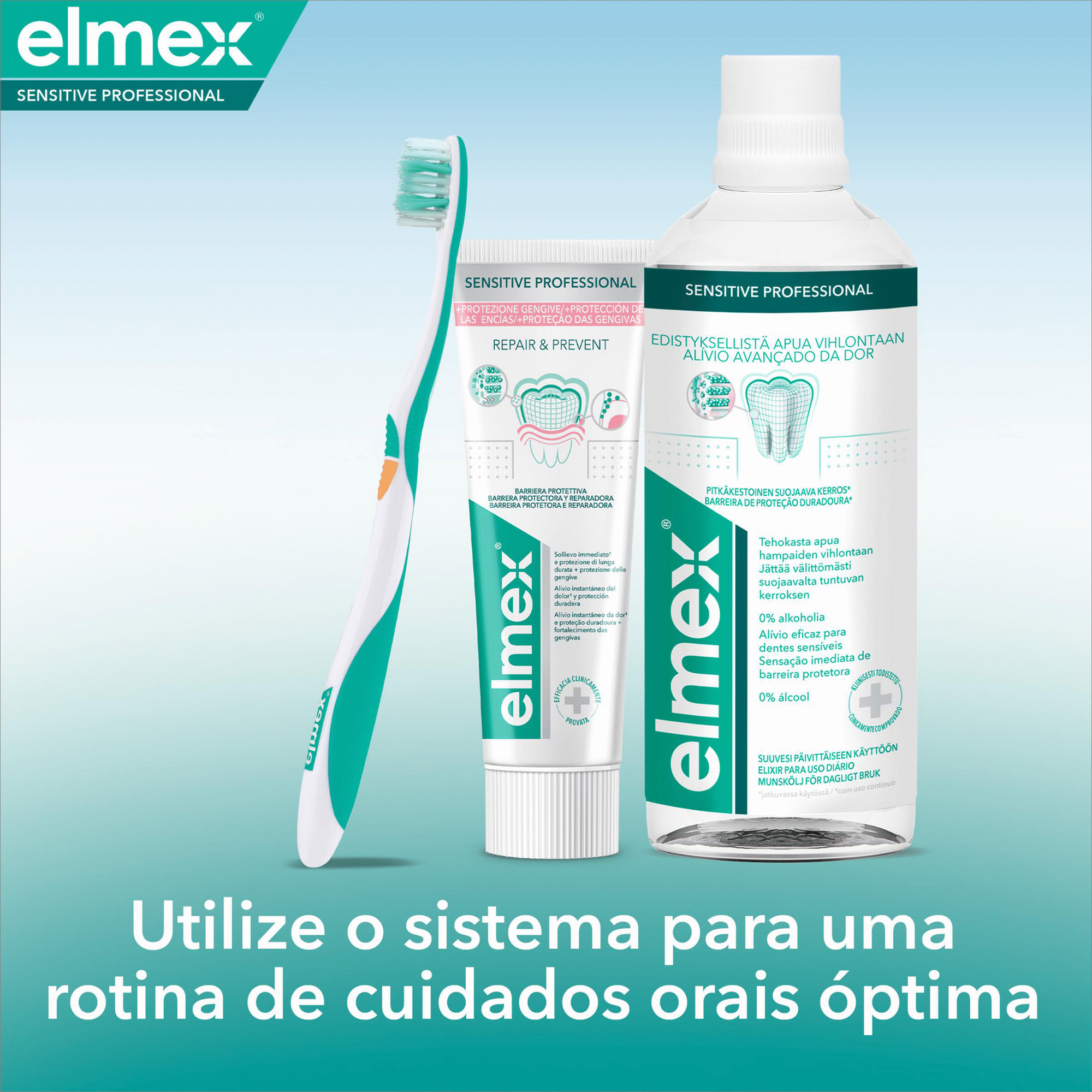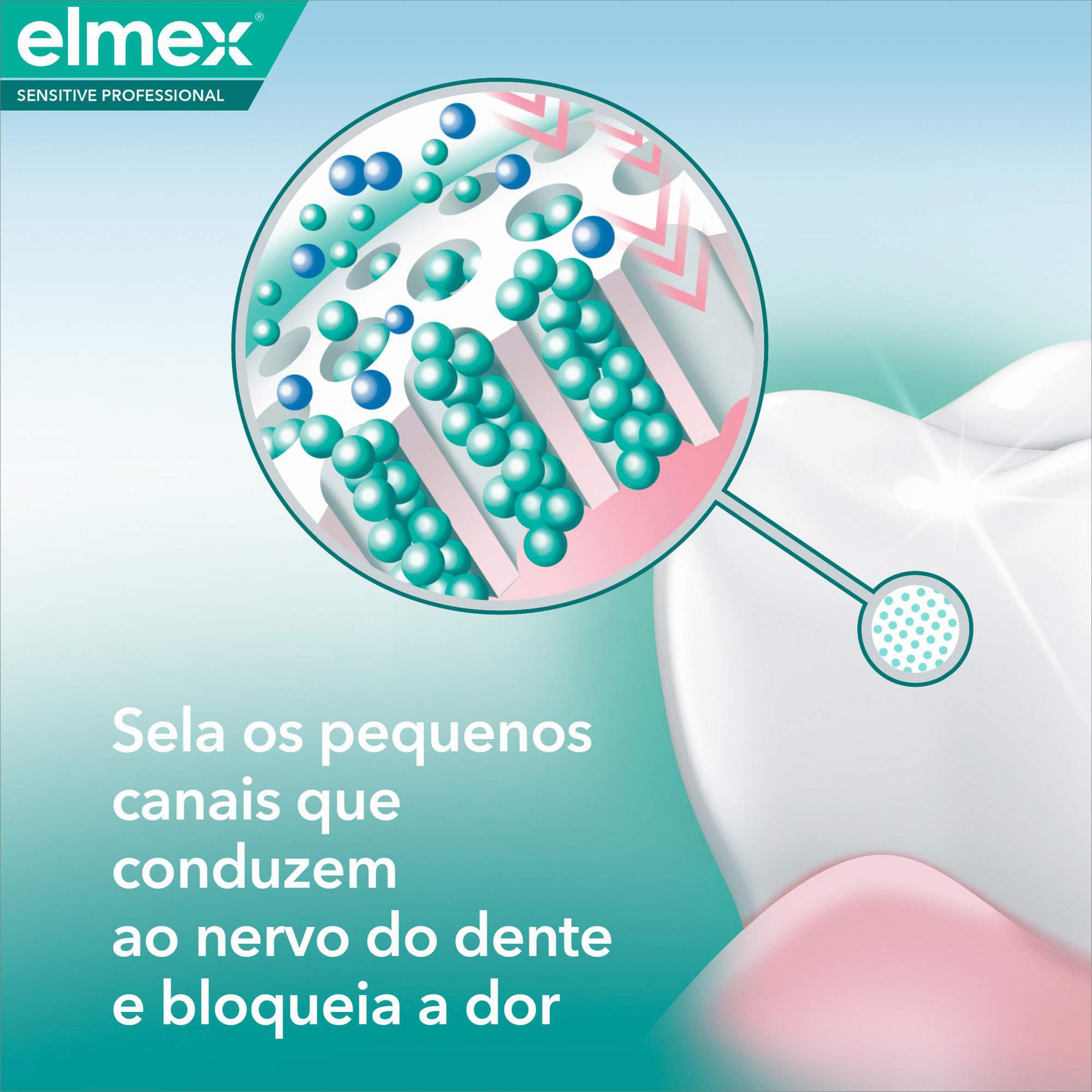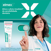Dentífrico elmex® Sensitive Professional Repara e Previne sela e oclui os canais que conduzem aos nervos dos dentes que causam sensibilidade, proporcionando proporciona alívio imediato e duradouro da dor dos dentes sensíveis.